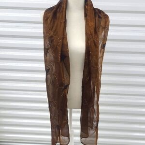Scarf Adorned W Silk Appliques Embroidery Sequins Copper Chiffon
