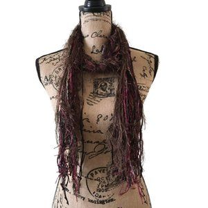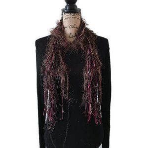 Artisan hand made ribbon scarf - Exquisite Knits by Jutta Zuloaga. Approximate measurement 63" - 65". Colors: Brown, rose, mauve, bronze. Excellent condition