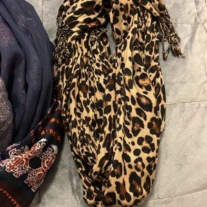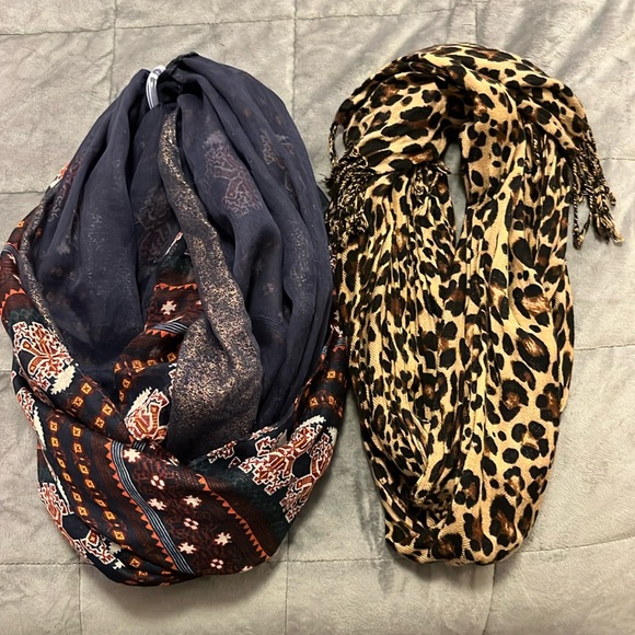 * Excellent condition bundle of 2 scarves. Navy Blue scarf is actually 2 separate sheer layers for a dimensional look and cheetah print is not infinity style (see hem in pictures). Both are listed separately on my page if interested!