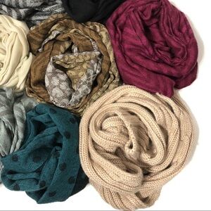 They are all infinity except for the tan scarf in the right bottom. That is just a knit winter scarf.