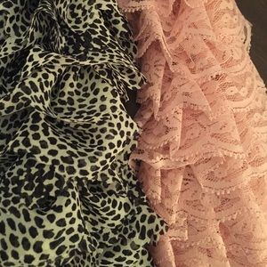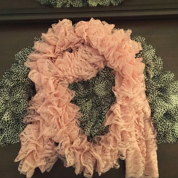 Scarf Bundle Set with Rose Pink Lace and White with Black Spots. These are beautiful decorative scarves that can be worn separate or together! Great to dress up a T-Shirt or fancy up a suit.