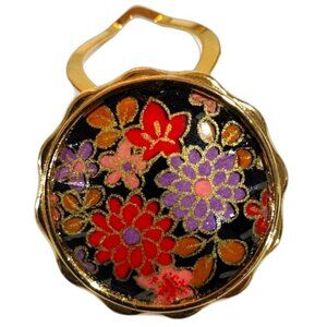 This Vintage Gold-Tone Floral Scarf Clip Pendant features an elegant, colorful floral design, set in a 1.5-inch round gold-tone frame. This versatile piece adds charm to any scarf, as a stylish clip and a unique pendant. Perfect for lovers of vintage-inspired accessories, this floral scarf clip combines classic elegance with vibrant colors, making it a beautiful addition to any outfit.