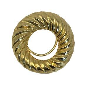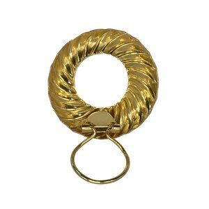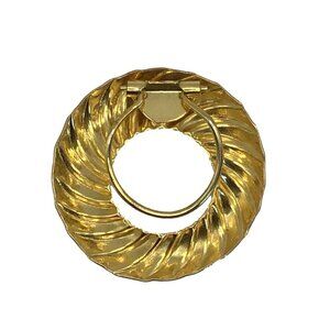 A beautiful Scarf Clip Vintage Gold Tone Round Cut Out Center Textured with a 2 Inch Diameter. Perfect for adding a touch of elegance to any ensemble.