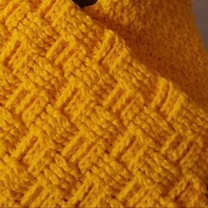This is an original handmade crochet cowl. This is the Textured Basket-Weave design. This scarf is also fully reversible. The color is Gold.