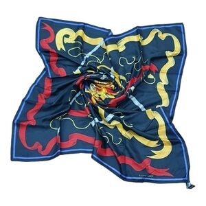 Scarf Ellen Tracy 100% Sllk Lions Crest Square 34x34 Inches Red Gold Ribbon Bows