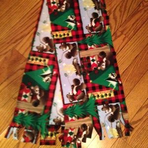 Fleece Scarf with a bear, camping, xmas theme fabric.