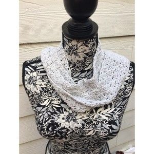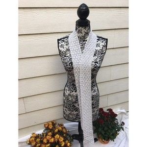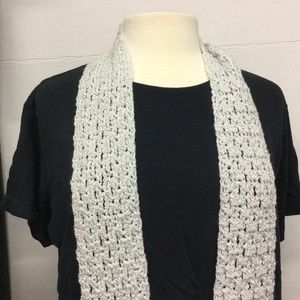 Hand crochet glitter scarf. Long light weight. Silver color sparkling shimmering glitter yarn. Catches the light. Can be worn a variety of ways. Measures approximately 74”x3 1/2”. New. From a smoke free and pet free home.