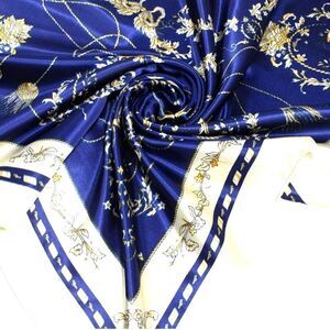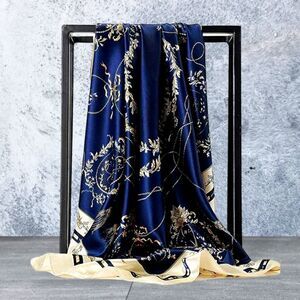 Scarf Headwraps for Women Silk Scarf Navy Satin Print 35 x 35
