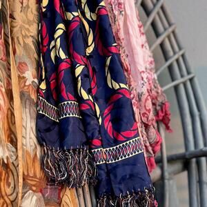 Scarf Navy Red Yellow Silky Designer Rare Luxury Vintage Scarf