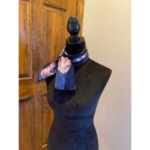 Scarf Navy Silky Like with Gorgeous Purple & Pink Flowers Versatile