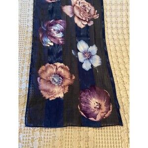 Navy Silky Like Scarf with Gorgeous Purple & Pink Flowers