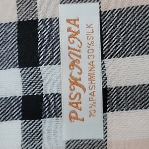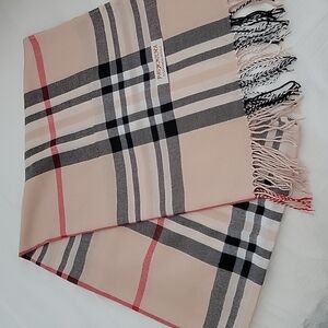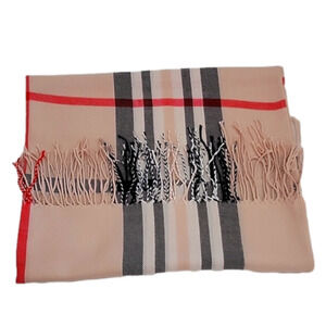Scarf Pashmina Silk Blend Long Brown Tan Nova Check Pattern Fringe New Soft Warm