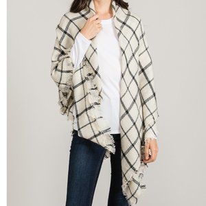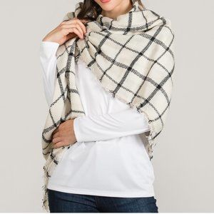 Scarf Shall Blanket Wrap Tartan Acrylic Soft Black White