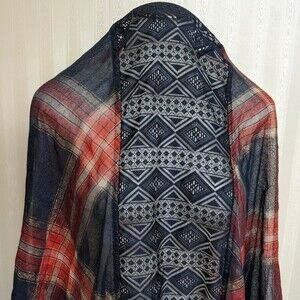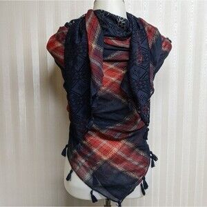 Scarf / Shawl / Wrap Boho Lace Fringe Neckwear Plaid Red & Blue