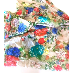 Scarf Women's Rectangle 72" X 23 Flowers Red Cream Blue Green