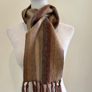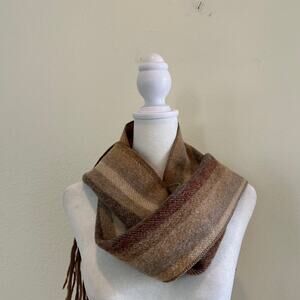 Scarf Wool Brown Cream Multi Tassel OS Neck Warmer Winter Accessories
