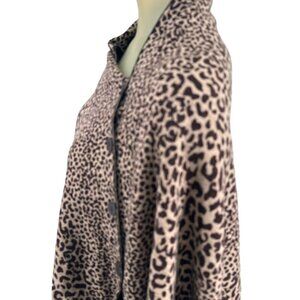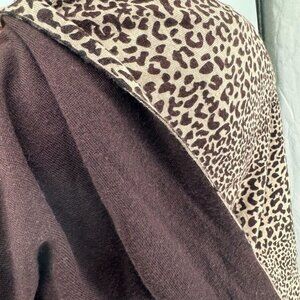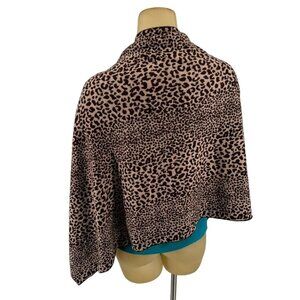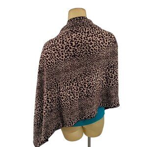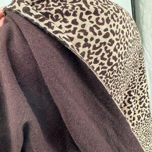Scarf Wrap Marino wool Leopard Print Poncho Brownreversible 26 X 60
