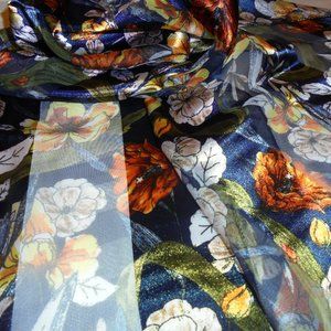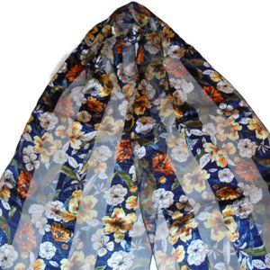 Scarf floral satin chiffon dark blue - gold
