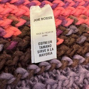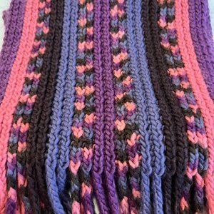 Scarf, multicolor strips. Joe Boxer acrylic scarf. 60" long, purple, pink, black