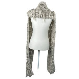 Scarf rectangle chunky knit fringe detail long 84”