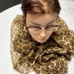 This is a large scarf. It’s nylon very very pretty. You could wear it as a shawl 46 x 46. You could put this on a table to use it as a tablecloth if you’re entertaining that would look so pretty because it’s actually that large it’s a master size. Very very lovely selling is shown meticulously stored in a climate controlled room no smoke no pet.
