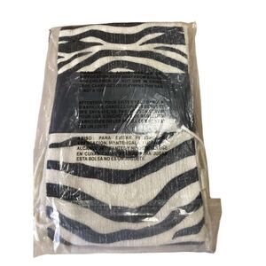 New with tags, in original packaging, cream & black with silver sparkle running throughout, scarf has fringe, See Measurements for Custom Fit