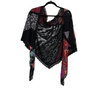 Large multicolor patchwork triangle Scarf excellent condition 81"X29"