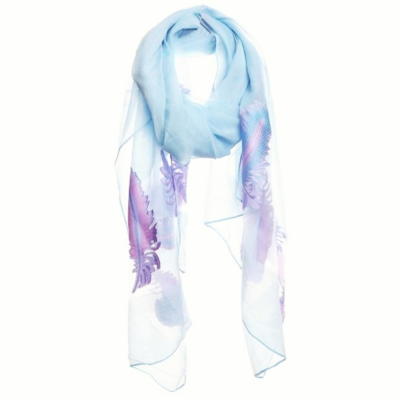 Blue Sheer Feather Print Design 27.5"W X 75"