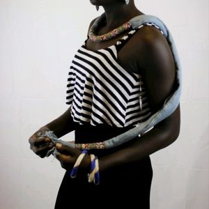 Loving beaded scarf from Kenya. This would also look good orange, red, green, white and purple.