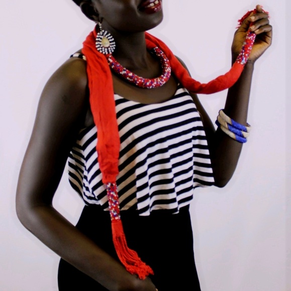 Loving beaded scarf from Kenya. This would also look good orange, red, green, white and purple.