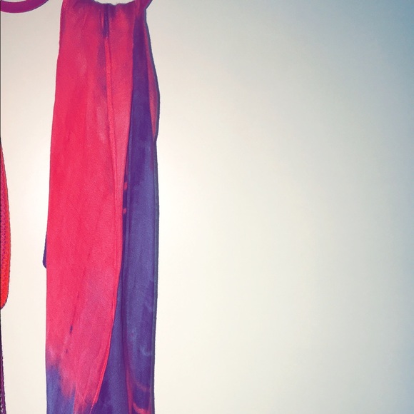 This scarf is a tie dyed pink and purple. This scarf has been worn once. It just needs a new home