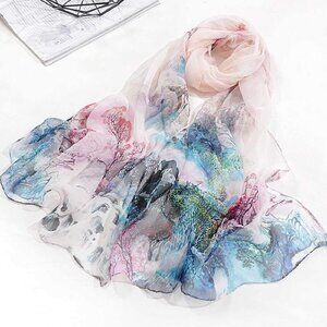 Scarfs Lightweight Print Floral Oil Painting&light Blue