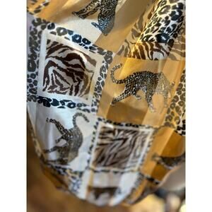 Silk feel with a patchwork design featuring various animal prints, including leopard, cheetah and zebra 13" v 60" Brown hues and black, has a nice shimmer to it. No Tag
