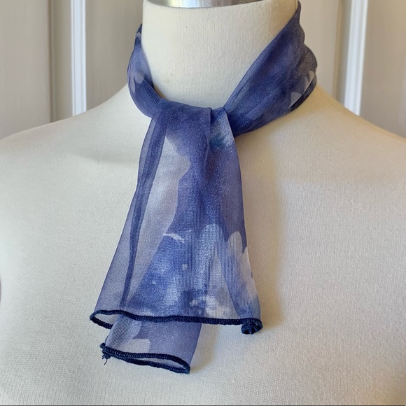 Measures 6” x 28” - soft & perfect for spring. A mixture between blue & violet w/ cream color flowers.