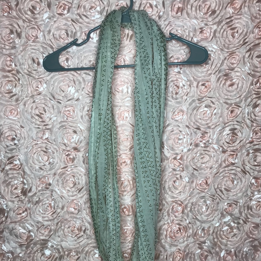 Tan colored wrap/scarf. Once piece with poka dots
