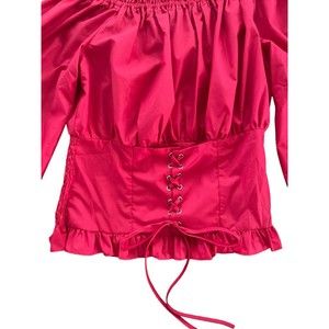 Scarlet Darkness Renaissance Corset Style Full Sleeve Ruffled Neck Red Top M