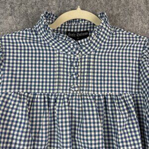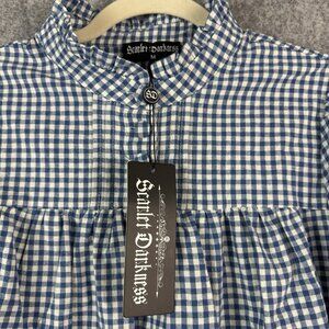 Scarlet Darkness Victorian Gingham Blouse Lantern Sleeves Blue White Size M