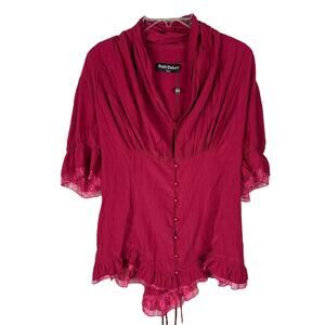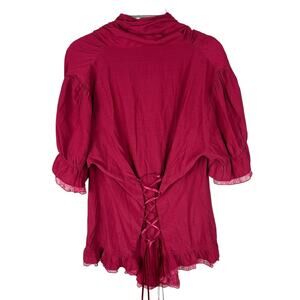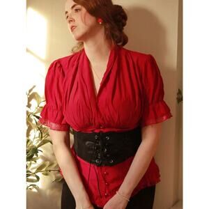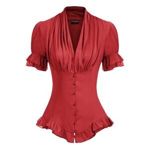 Scarlet Darkness Victorian Pleated Shirt Lace Up Work Blouse Plus Size XXL