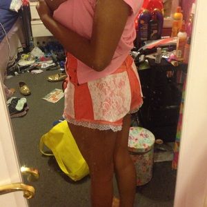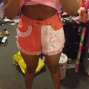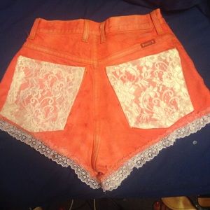 Handmade high waisted shorts. Scarlet colored with lace trimmings. WARNING, these are a little bit cheeky π