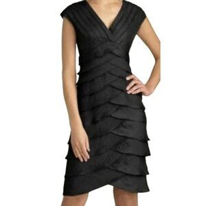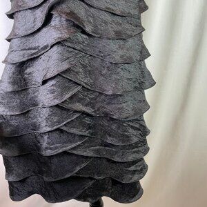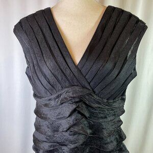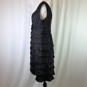 Scarlet Nite Tiered Ruffles Black Cocktail Dress Size 12 Cap Sleeves V Neck