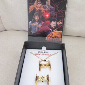 New in Box - Entertainment Earth Exclusive Limited Edition Marvel Doctor Strange in the Multiverse of Madness Scarlet Witch Gold-Tone metal necklace and ring set.