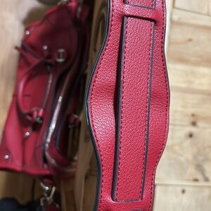 This purse is in perfect condition!! 3 inside pockets and 1 outside pocket, double zipper, adjustable and removable long shoulder strap with 2 hand straps.
