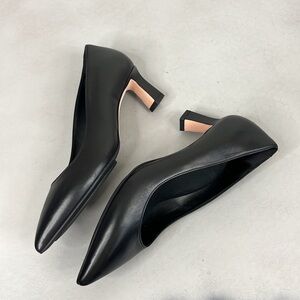 Scarlett Chase Amore 55 Pump Black Leather Pointy Toe Block Heels in Napa Black