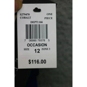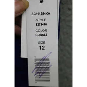 This is a Scarlett Cobalt Chiffon Dress that is a size 12. It is just gorgeous! The straps are chiffon and are semi-sheer. It has a built in bra. It is 100% Polyester. Laying flat, it measures: Armpit to armpit-18.5" and the length is 40". It zips in the back. This one is for a special occasion. It is new w/tags and retails for $116.