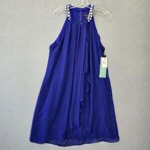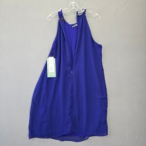 NEW Scarlett Electric Blue Midi Dress Shift Formal Beaded Halter Neckline Lined Lightweight MSRP $80 Women's Plus Size 18 Formalwear