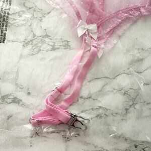Scarlett Gasque Sheer Pink Polka Dot Suspender Garter Belt women’s size large