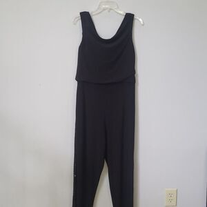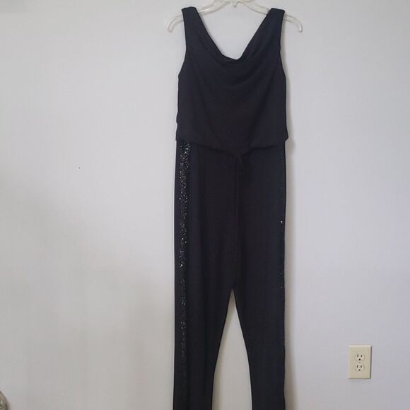 Scarlett Jumpsuit Womens 8 Black Sleeveless Cowl Sequined Tuxedo Stripe Leg NYE