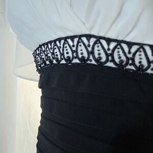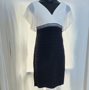 Really pretty Scarlett Nite dress in black and white with a bodycon design, flutter sleeves, v neckline, and more. Embroidery detailing and beads, so very pretty. Look amazing at your next event with this beautiful dress. Size 8. Excellent condition
