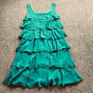 Scarlett Nite Dress Women's 6 Teal Sleeveless Tiered Ruffle Beaded Trim Flapper