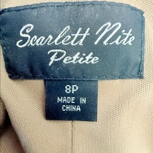 Look stunning in this Scarlett Nite sheath dress in size 8P. The dress features a beautiful floral pattern with layered lace and metallic cap sleeves. The V-neckline and zipper closure add a touch of elegance to the knee-length dress, making it perfect for any occasion such as travel, wedding, holy communion, party/cocktail, formal, workwear, or business.